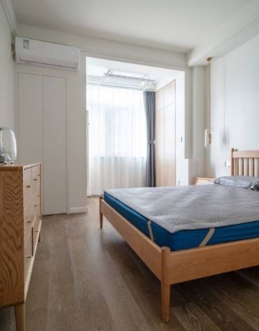 主卧雅中见致,和顺恬淡的惬意感,让东方好意思学得以开释。空间行径有限,弃取了小尺寸的床头柜,迷你的外不雅造型,依然蛮可人的。