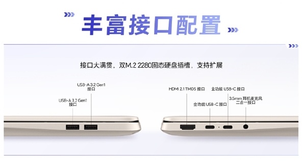 接口建设上,这款条记本也十分丰富。它配备了双USB-A、双USB-C以及HDMI2.1接口,无需非凡佩戴拓展坞,就能草率连结U盘、透露器等建造。同期,还预留了双M.22280固态硬盘插槽体育游戏app平台,便捷用户后续自行扩容存储空间。